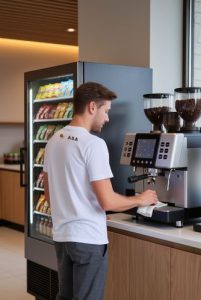 Pour une expérience sans souci, ASA assure un entretien préventif et complet de vos distributeurs. Nettoyage, réglages, contrôles techniques… nos interventions prolongent la durée de vie de vos machines et garantissent une hygiène impeccable, jour après jour.
